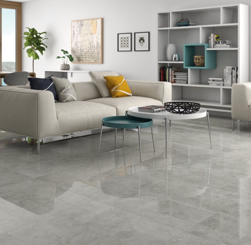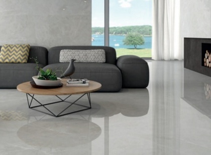 Pulēta akmens masas flīze ar neuzkrītošu akmens zīmējumu. Piemērota grīdām un sienām.