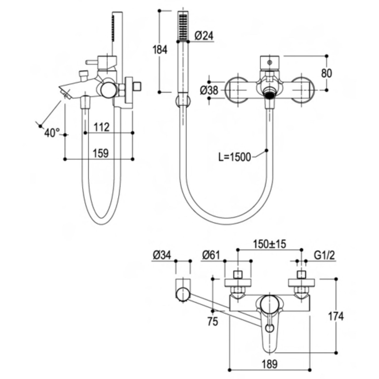 Vannas maisītājs ar rokas dušu DIAMETRO 35S ārējais