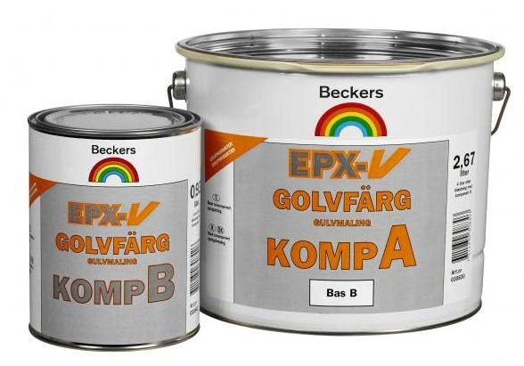 EPX-V Golvfärg– spīdīga, ūdens bāzes, 2-komponentu epoksīda pārklājums betona grīdu krāsošanai iekšdarbos, kur nepieciešama augsta noturība pret mehānisku nodilumu un ķimikāliju iedarbību. Ja lieto ārdarbos, krāsa var sākt „krītoties”. Kombinācijā ar EPX-V Klarlack laku un pārslām Golvflingor, veido spīdīgu un ļoti izturīgu pārklājumu.