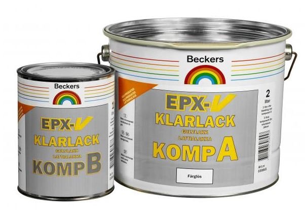 EPX-V Klarlack– ļoti spīdīga, ūdens bāzes, 2-komponentu epoksīda laka grīdu apdarei iekšdarbos. EPX-V Klarlack paildzina kalpošanas laiku un paaugstina nodilumizturību EPX-V Golvfärg pārklājumam. Lakai ir ļoti laba ķīmiskā noturība un augsta nodilumizturība un tādēļ tā ir teicama industriālo un lielas noslodzes grīdu apdarē, galveno kārt kombinācijā ar EPX-V Golvfärg krāsu.