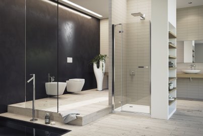 Jaunā DUKA dušas kabīņu kolekcija GALLERY 3000 nāk no VERTICA saimes, kas savā pamatā ir no rūdīta stikla un vertikāliem profiliem.