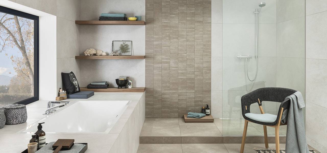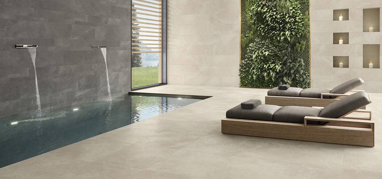 Neslīdīga virsma, dažādo izmēru sistēma, četri flīžu toņi piedāvā brīvu visaptverošu konceptu radīšanu gan sienām, gan grīdām.