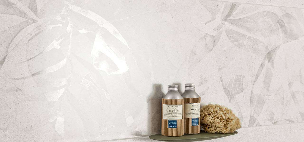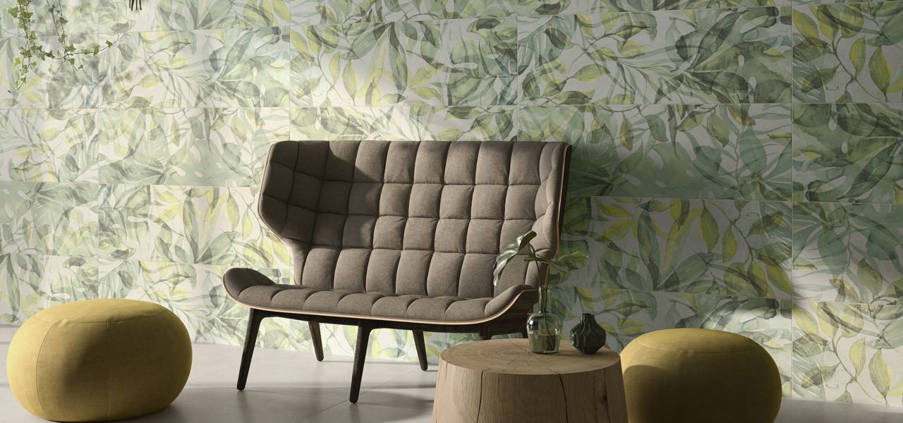 Grīdas flīžu matētā virsma piedod dziļumu, kas ļauj materiāla struktūrai izskatīties pilnīgai, gandrīz trīsdimensiālai. Kolekcijas galvenie elementi ir izteiksmīgie sienu dekori. Divi ziedu motīvi piedāvā eksotisko augu lielo lapu izskatu, kas atgādina palmas vai rododendrus – izvēle ir starp diskrētā vai bagātīgi zaļo toni. Otrais dekors atgādina senlaicīgas keramikas flīzes. Harmoniski bēšīgi zaļais tonis ar eleganti matētu spīdumu padara šo dekoru īpaši pievilcīgu.